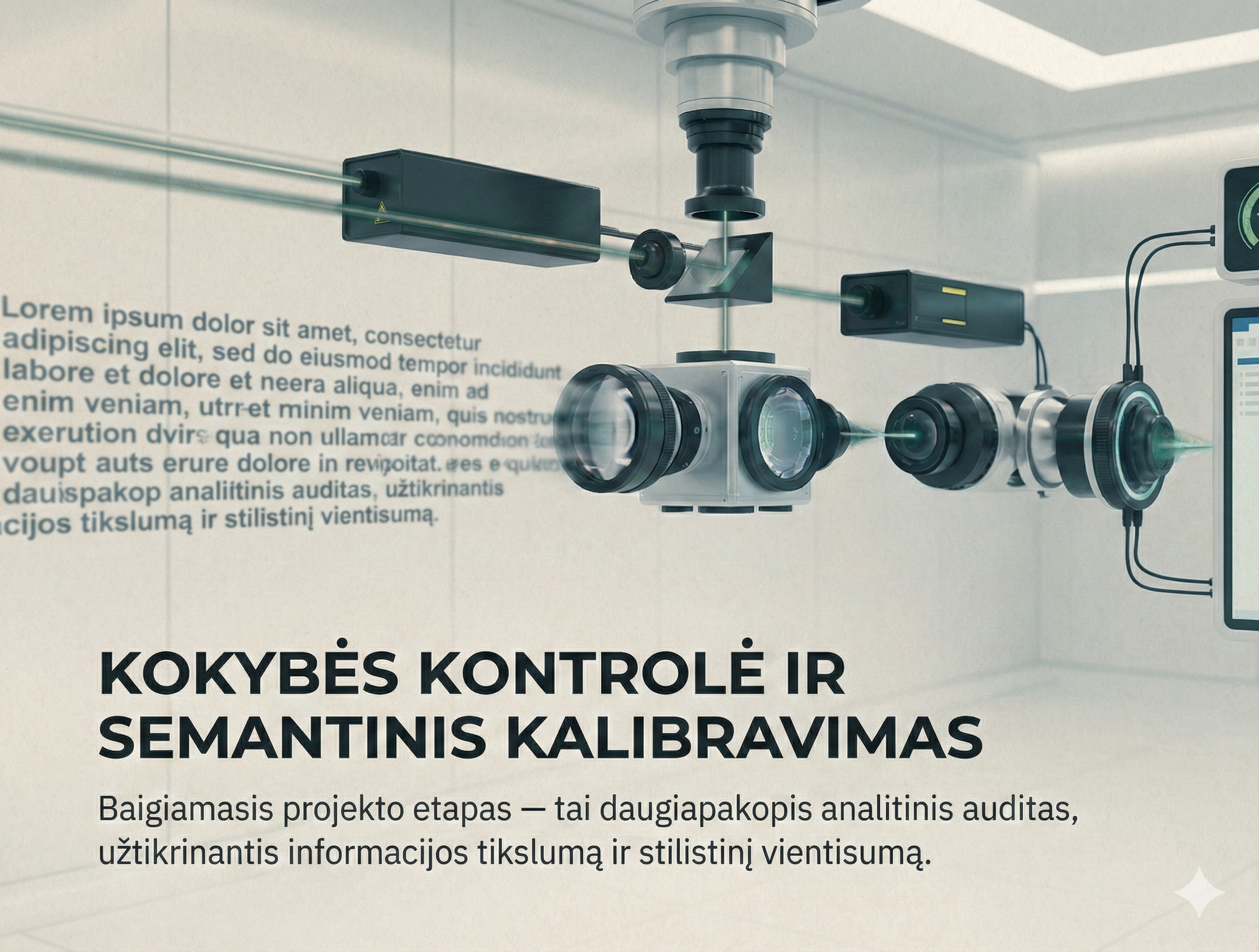 Baigiamasis projekto etapas — tai daugiapakopis analitinis auditas, užtikrinantis informacijos tikslumą ir stilistinį vientisumą. Šiame procese pasitelkiami pažangūs DI algoritmai, kurie tarnauja kaip papildomas intelektinis filtras, eliminuojantis menkiausius semantinius nuokrypius.